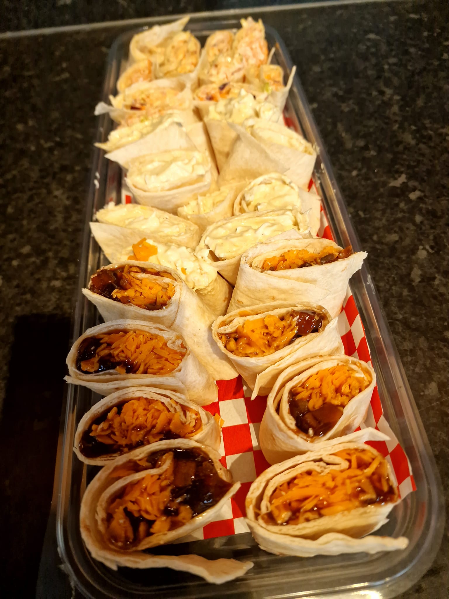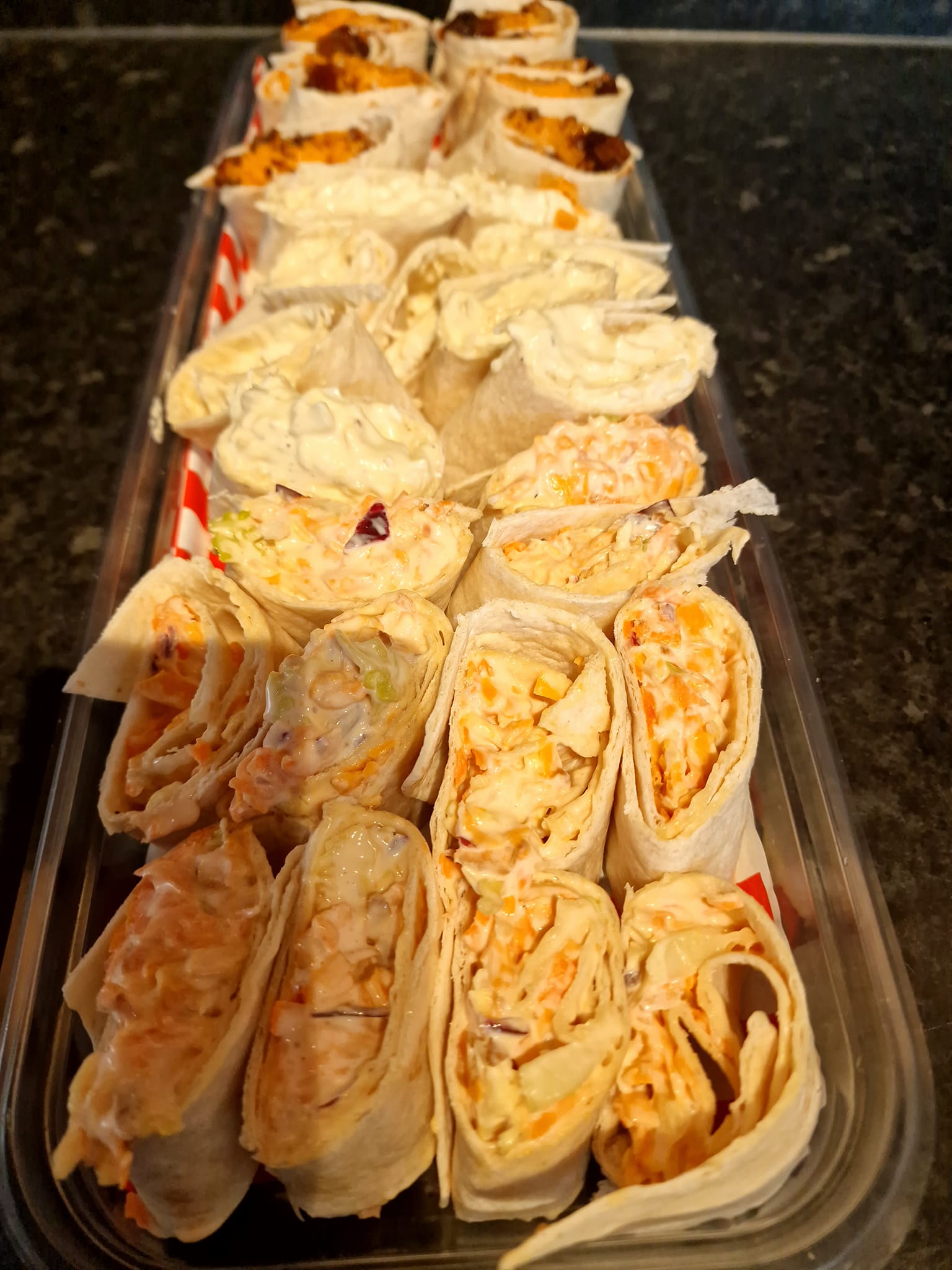Suggested sandwich/wrap fillings - Cheese with onion, pickle or coleslaw, Egg Mayo, Tuna Mayo with red onion, cucumber or sweetcorn, Ham & cheese, ham salad or plain ham, Coronation Chicken, Chicken Tikka, Chicken Caeser, BLT
