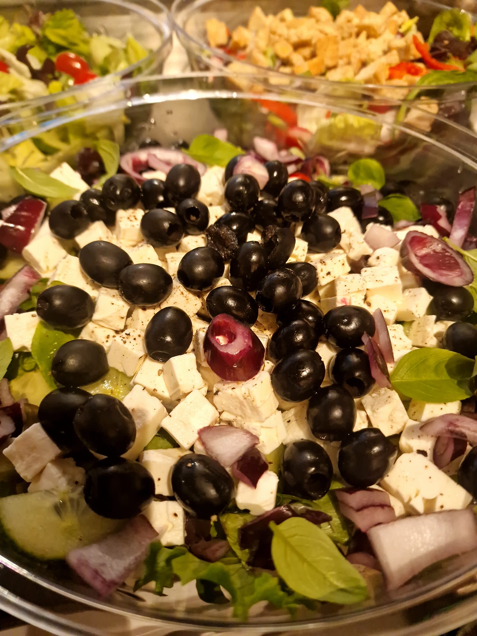 Lettuce leaf, rocket, green/black olives, red onion & Feta cheese